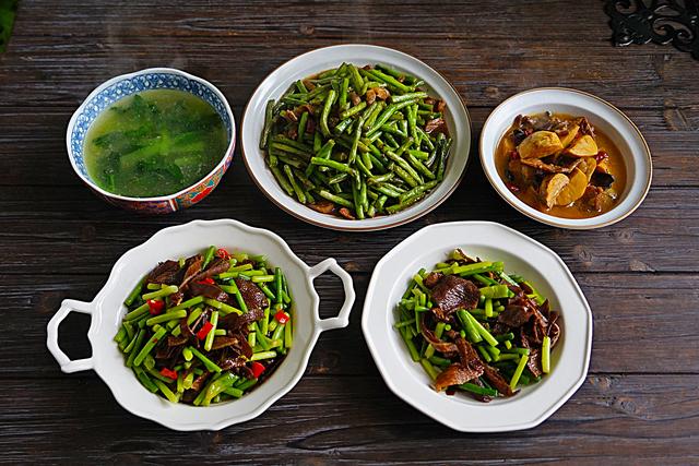 婆婆是一个非常细心的人,你看这两盘菜,其实就是同样的食材,一盘是辣口的,一盘是没有辣椒的,毕竟家里有人爱吃辣椒有人却不爱吃辣椒。