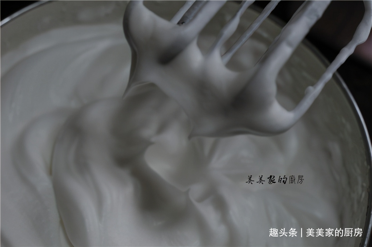 再加入30克糖,打至硬性发泡。
