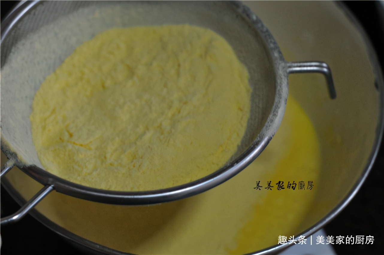 于是我就试着用粗粮来做蛋糕,没想到非常成功呢!玉米粉的粗糙,搭配戚风蛋糕轻盈的口感,孩子也特别喜欢吃,特意减少了糖的量,既不妨碍蛋糕的长高,淡淡的甜味,多吃几块也不会腻,当早餐或者点心都特别赞哦!
