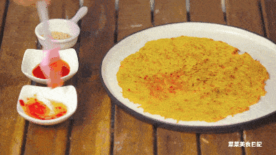 等到两面煎黄,再涂上喜欢的酱料,就可以放开嘴吃啦。