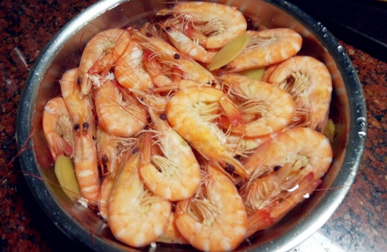 3、煮虾时,时间不要太久,观察虾的变化,虾尾弯曲后就要捞出,这样煮好的虾肉不会老。