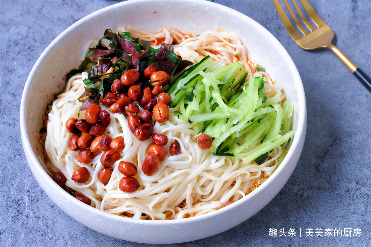 主料 面条一把 黄瓜半根 花生米适量 芝麻适量 辣椒粉适量 葱花适量 鱼腥草适量