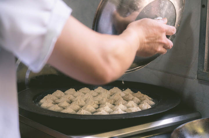 一锅生煎包要等大约15分钟,要想快一点话可以吃小笼包,七八分钟就能好。店里的小笼包皮很薄,汁水超多,是地道的杭州做法,而现点现包现蒸的就很少见了,很多店里用的其实都是冻品。在这里吃必须要有耐心,这样才能新鲜热乎好吃。