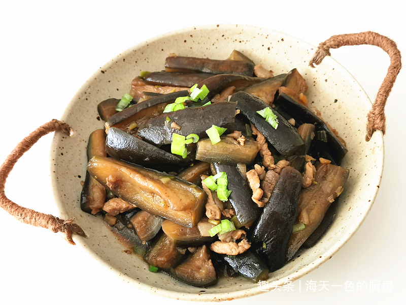 具体做法:把茄子的外皮撒上盐,用盐搓一下,再用流水冲洗干净,把蒂切掉,再切成三段,将每一段再切成小条,不要太粗也不要太细;茄条全部切好放进一个大盆里,一层层撒上半勺盐,用手抓拌一下,放一边腌制15分钟;接下来调个料汁,取一个碗,里面倒入生抽、蚝油、半勺盐和白糖,再倒入适量的清水,用筷子搅匀;腌好的茄条,用手挤干水分备用;五花肉洗净切成细丝,葱切葱花,姜切片,大蒜切成蒜末;锅中倒入花生油,把五花肉丝倒入翻炒至变色,再倒入葱花、姜片和大蒜末翻炒出香味;倒入茄条翻炒均匀,多炒一会儿,使油分浸入茄条中;倒入料汁,盖上锅盖焖煮至茄条熟透,碗中倒入玉米淀粉,加入清水,搅匀调成水淀粉,分次倒入锅中煮至汤汁浓稠,出锅前撒上葱花即可。