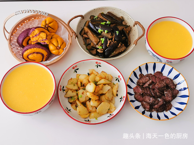 我家的午餐大多三菜一汤,这次做的午餐是肉丝茄条、孜然土豆块,还有过年时剩下的香肠,主食是做的南瓜紫薯双色馒头,粥就喝清淡营养的玉米粥。把午餐晒到网上,网友评论:还是家常菜吃着舒服,哈哈,看来众多网友都吃够了大餐。是啊,家常菜既好吃还不腻,多吃也不怕胖。