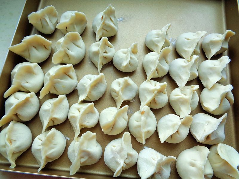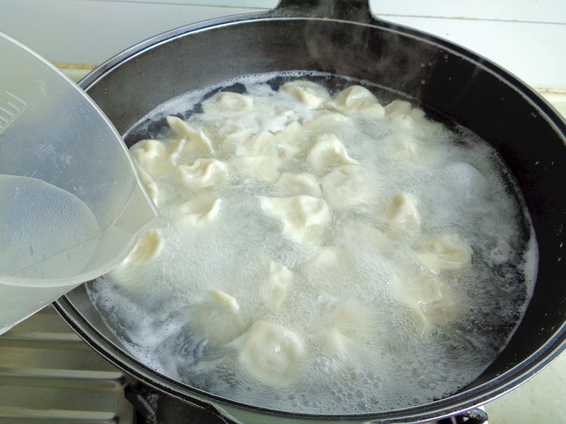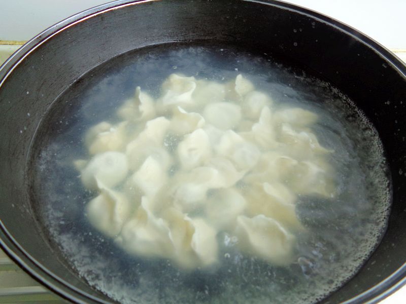 12、再盖上锅盖煮开,如此反复两次,待饺子的肚子圆滚滚发亮即可捞出来了。