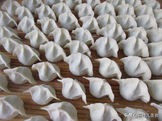 第七步:包完以后放到盖帘上,这时就可以开始准备煮饺子了。