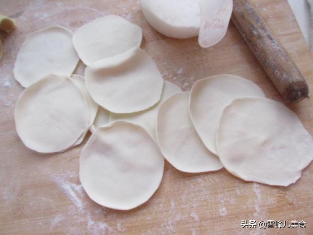 第三步:把面团揉匀后,搓成条揪成小剂子,按扁擀成薄一些的饺子皮,一次多擀一些。