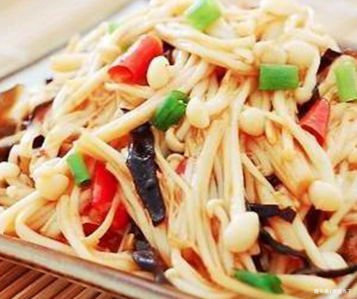 食材:金针菇350克;黑木耳4朵;泡红辣椒2个;姜2片;大蒜1瓣;香葱1棵;郫县辣酱2小勺;鱼香汁:;酱油2小勺;醋2小勺;黄酒1小勺;白糖2小勺;水淀粉2小勺