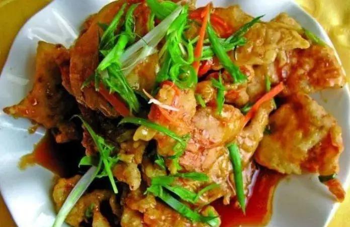 1、猪里脊肉切大片,厚约2-3毫米,不能太薄,太薄就炸干了