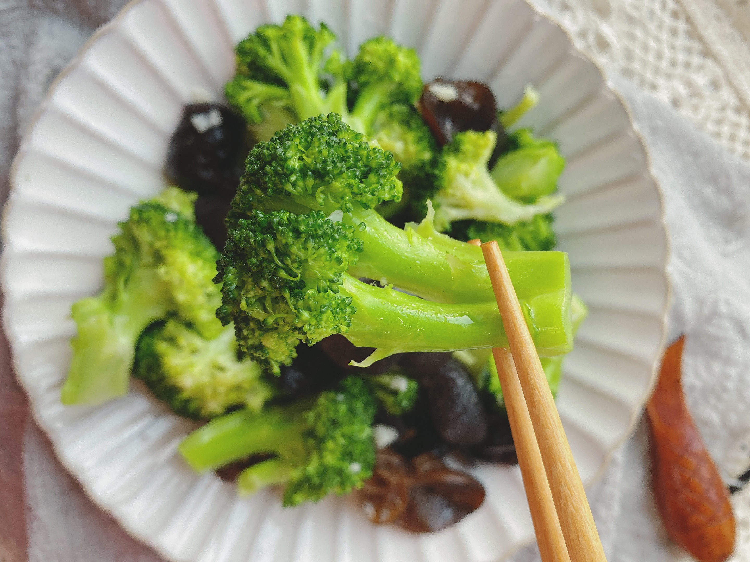 5、营养丰富的木耳炒西兰花就做好了;