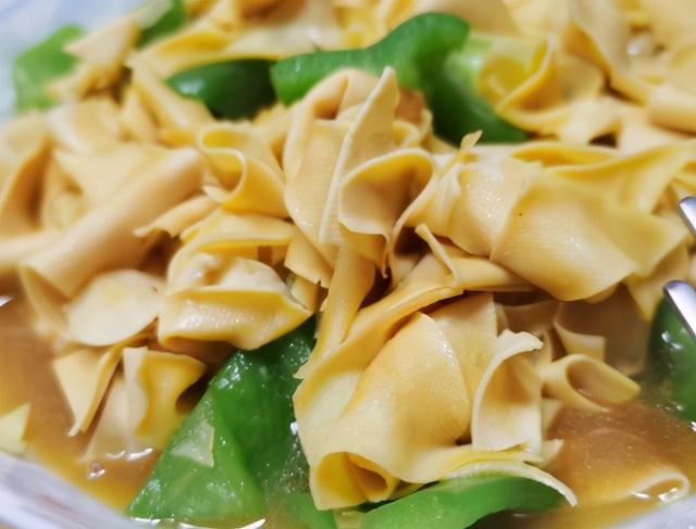 菜市场碰到有卖豆腐皮的我从不手软,花4块钱买2张,切成丝下锅一炒,鲜香滑嫩味道好,炒豆腐皮可搭配多样的食材,这次我要分享给大家的是一道青椒豆腐皮炒肉,青椒、豆腐皮和肉搭配,有荤有素,做这道菜的时候大家掌握好方法和技巧,味道便会非常好,豆腐皮不干硬,反而更加滑嫩多汁,下面我便会将这道青椒豆腐皮炒肉的做法分享给大家,搭配一碗白米饭,让人吃的停不下来。