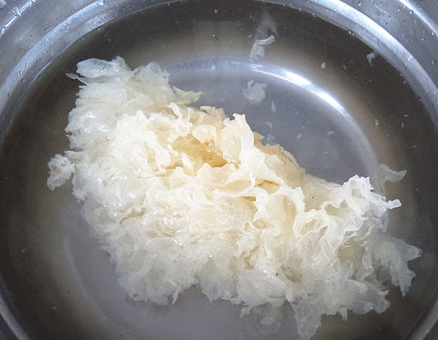 第二步:等到银耳泡发之后,把银耳捞起来沥干水分,把银耳的根蒂去掉,再把银耳撕成小朵的装在碗中备用。接着把浸泡好的莲子和百合用清水冲洗一下,冲洗过的莲子和百合煮出来汤水卖相更好看。