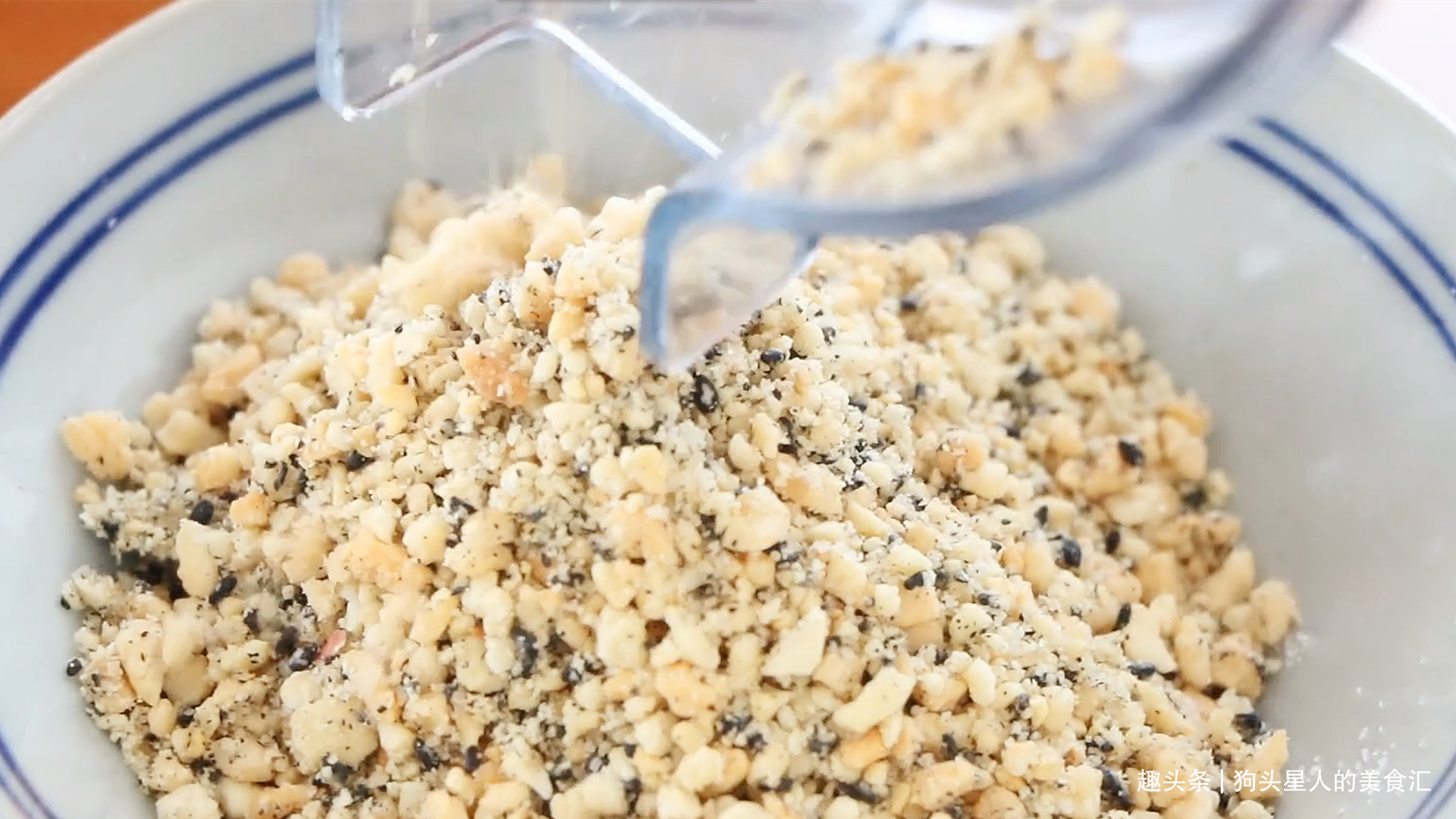 8.放入料理机中,打成小颗粒状。或者用擀面杖擀碎一点,有一点颗粒感吃着更有口感。