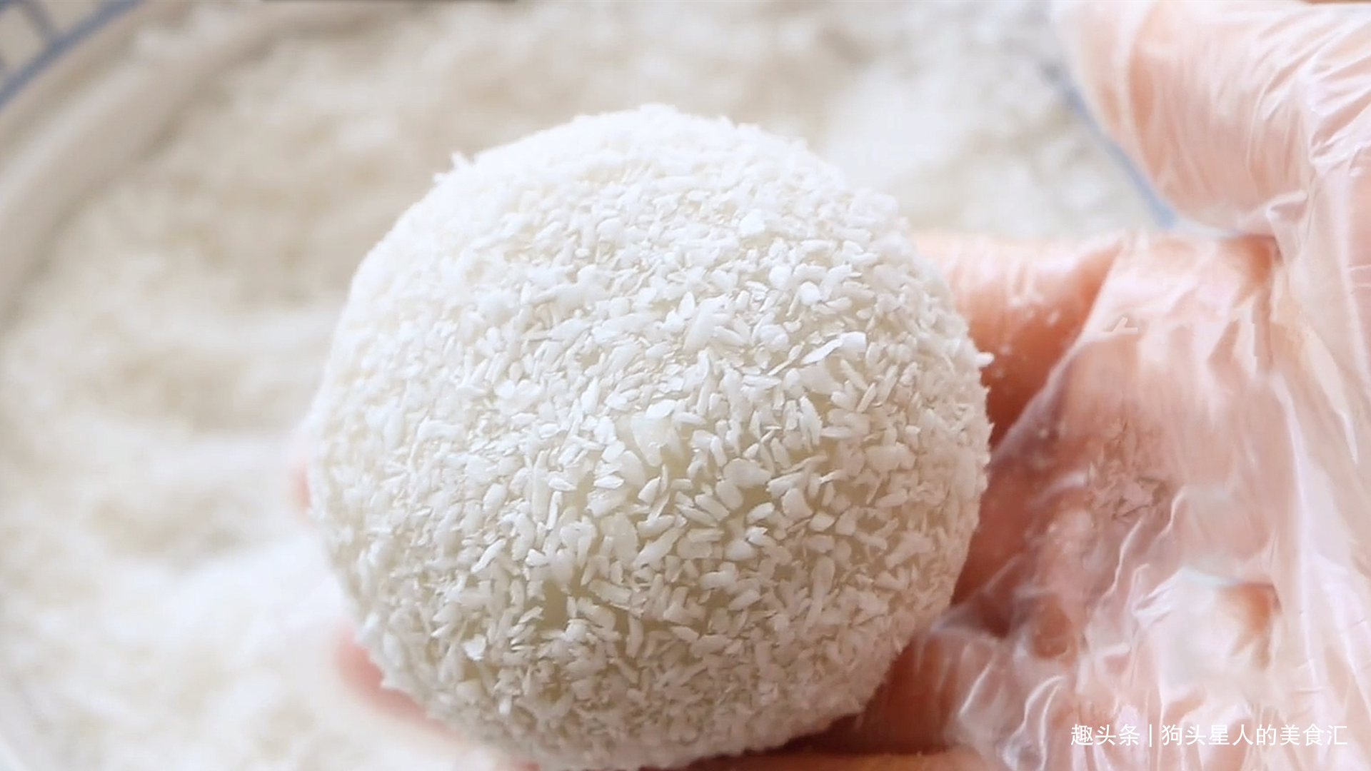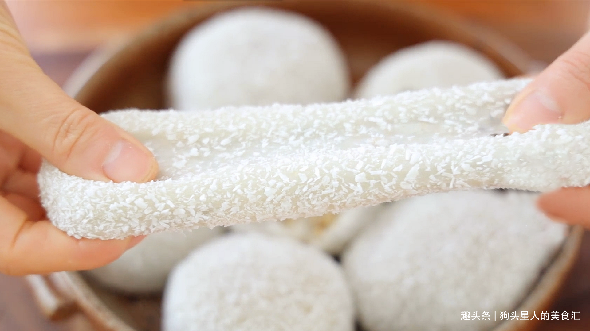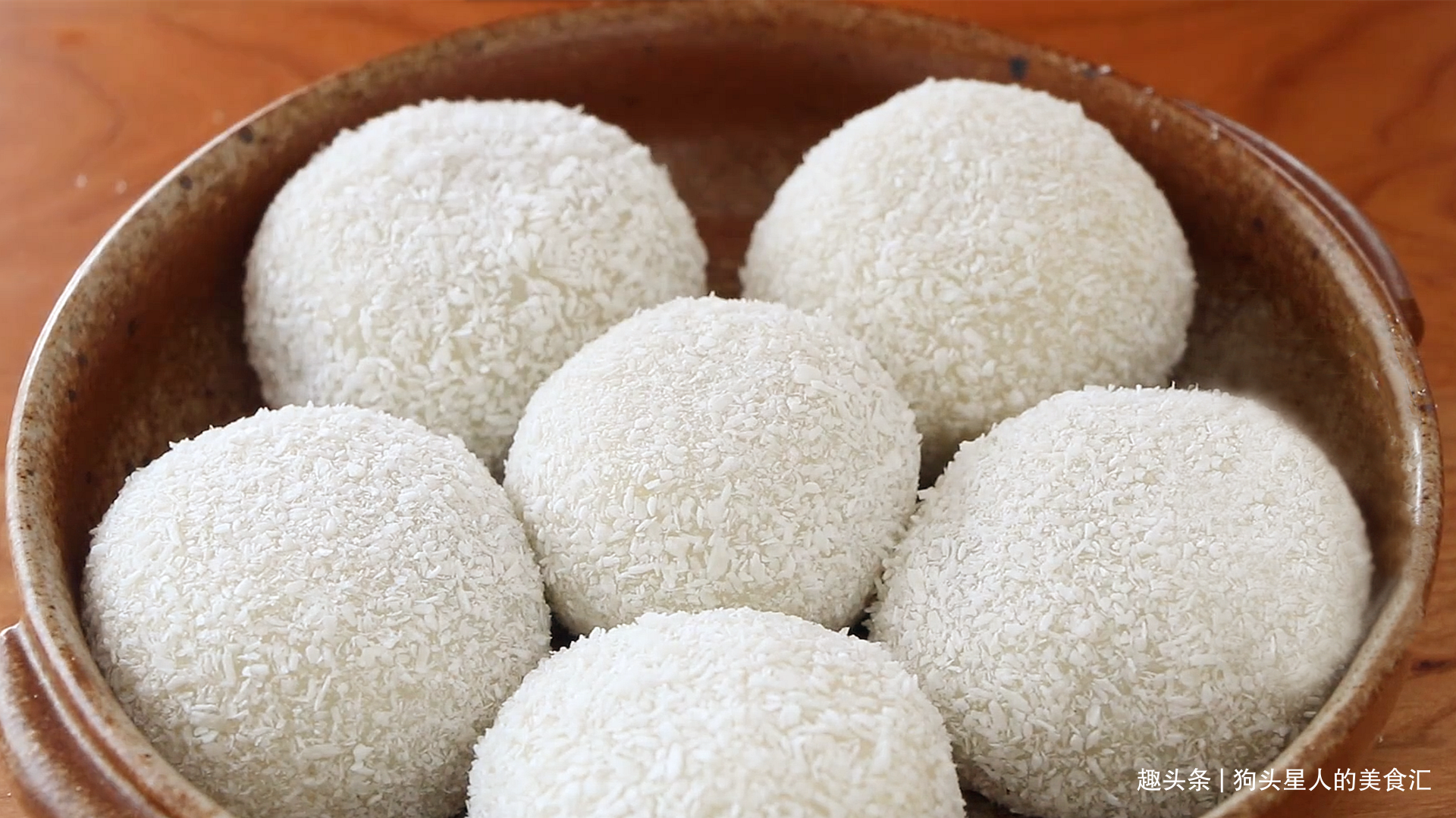 13.最后滚一圈椰蓉即可,没有椰蓉可以忽略,或者换成黄豆粉。全部做好就可以直接吃, 不用再蒸了。