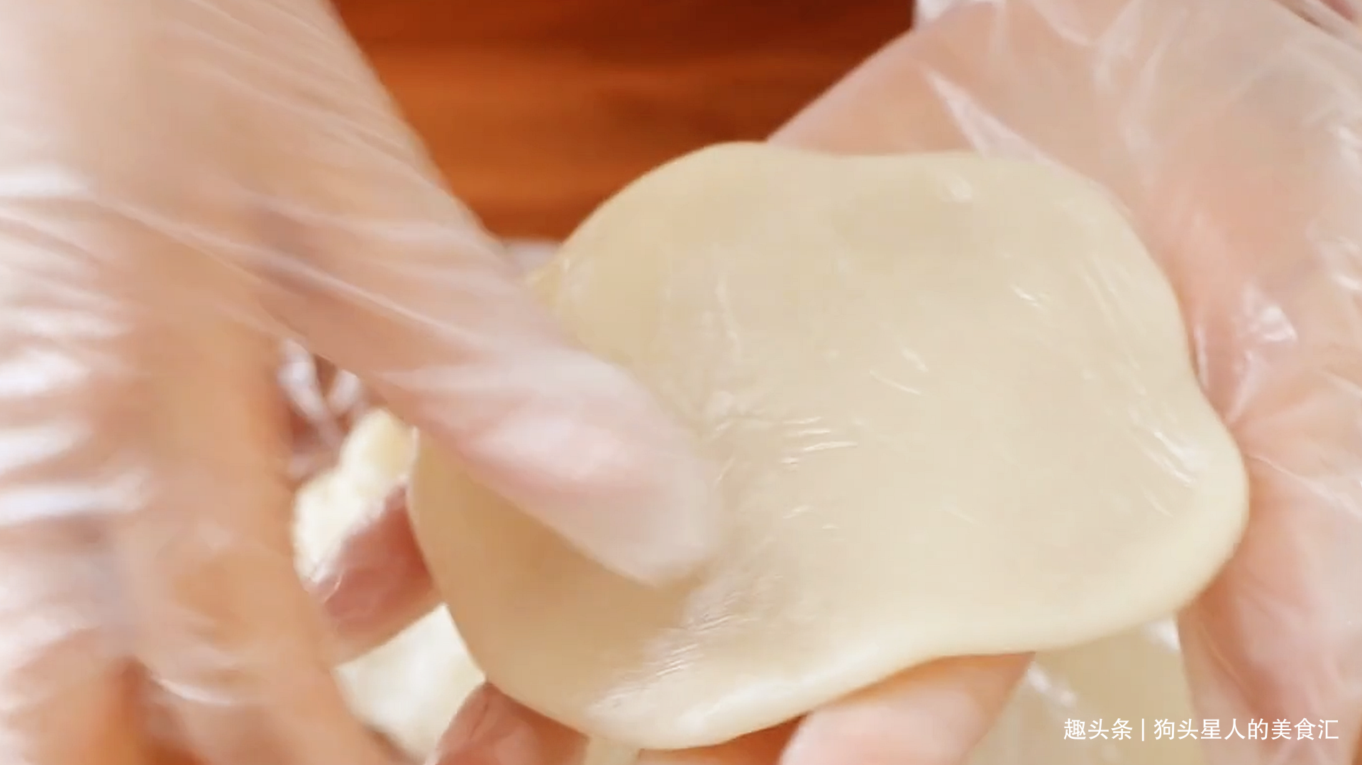 2.面团很热的时候揉着会很粘手,放凉一点再下手就好很多,水太多会更粘,全部都是糯米粉也会很黏。