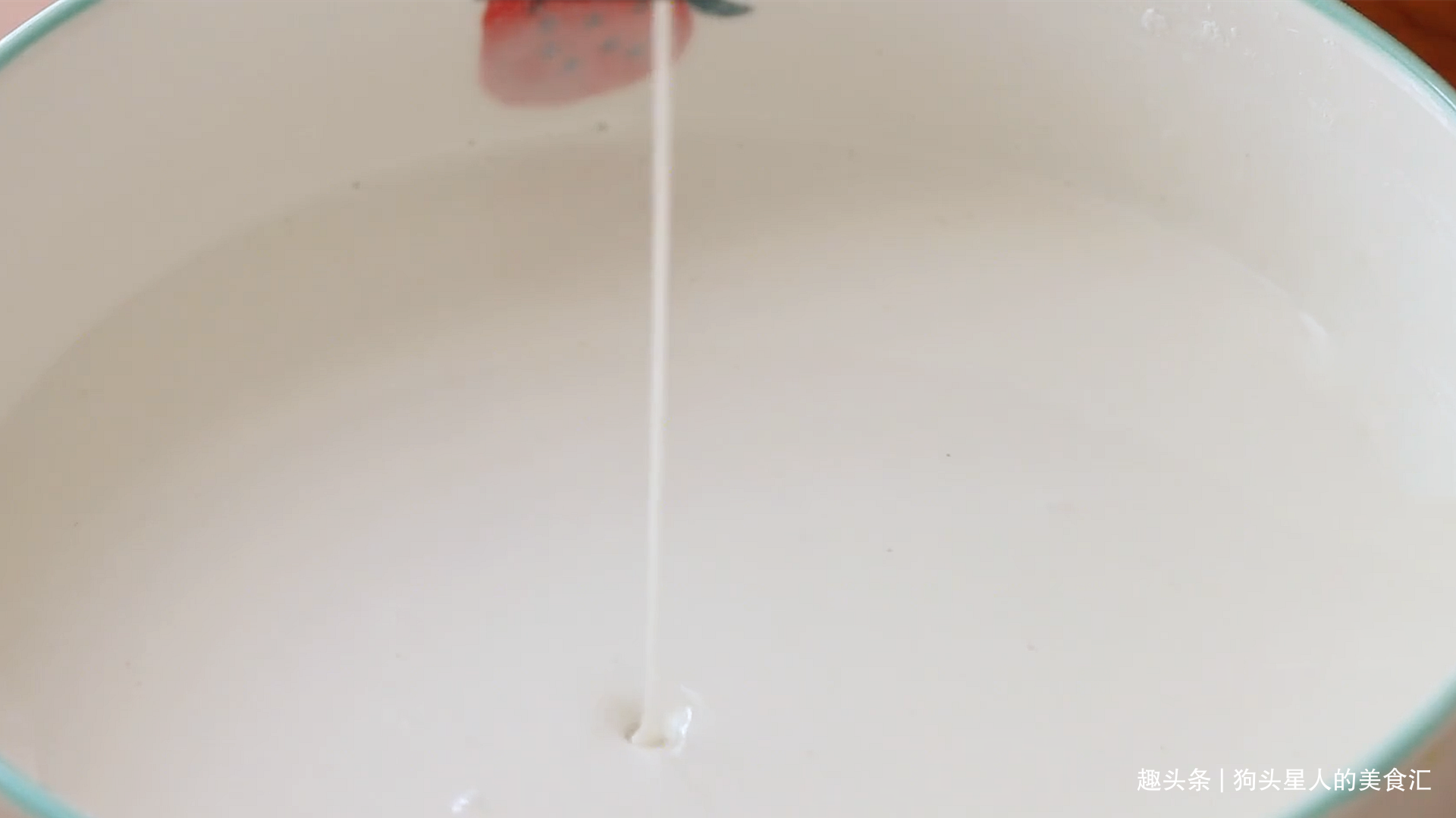 2.清水少量多次地加入,一边倒一边搅拌,搅拌成细腻无颗粒的能流动的面糊即可。