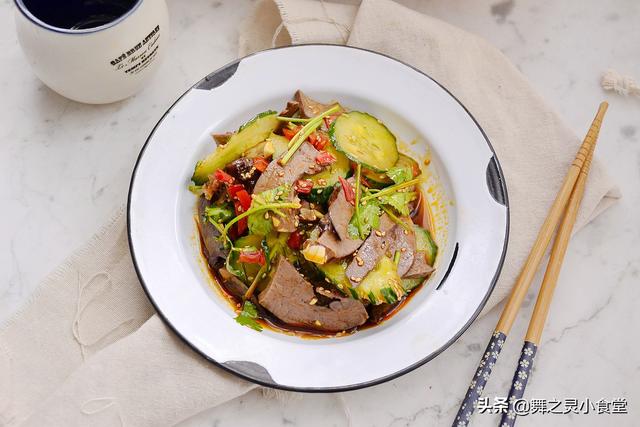 清洗干净后切成薄片,加入黄瓜丝蒜蓉,生抽盐辣椒油和花椒油,糖香油拌匀即可。
