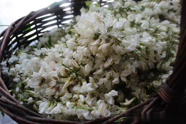第一步:我们先来说说槐花,槐花是槐树的花朵,槐花不但营养丰富,而且味道清香甘甜,富含多种维生素和多种矿物质,常吃些有清热解毒、凉血润肺等作用,很适合干燥的春天。现在槐花正开的季节,去野外的槐树林采摘一筐子,回家慢慢吃。