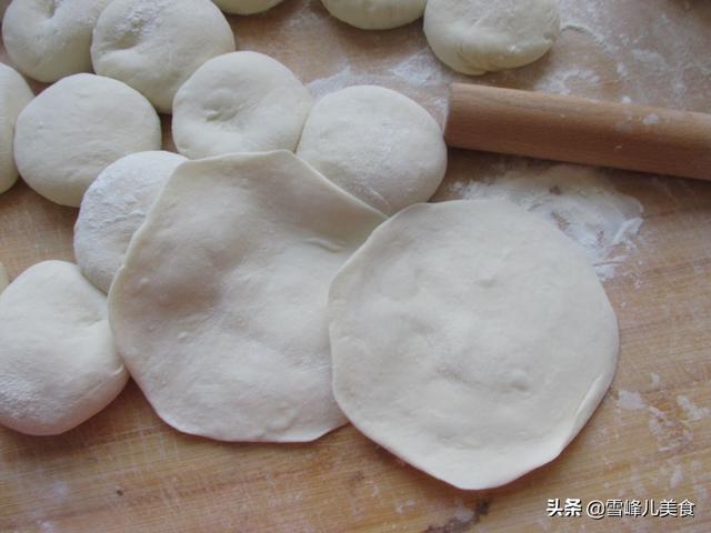 第四步:把面团搓成长条,分割成小剂子,擀成稍厚的包子皮。发酵的包子皮不能太薄,太薄了会影响涨发。
