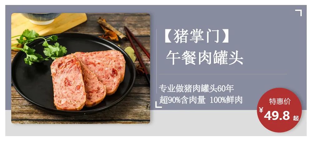 猪掌门可是专业做猪肉罐头60年!它家的午餐肉,有超90%含肉量,而且用100%鲜肉制作。