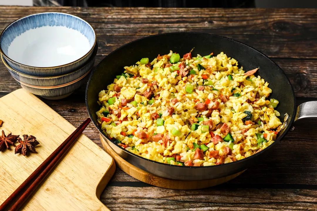 午餐肉切成丁,做个蛋炒饭也不错,绝对的色香味俱全。