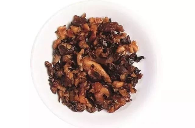 选用甜菜脯(即萝卜干)切碎备用。潮汕的菜脯有咸甜两种,熬砂锅粥时要选用甜口的,提鲜效果更佳。