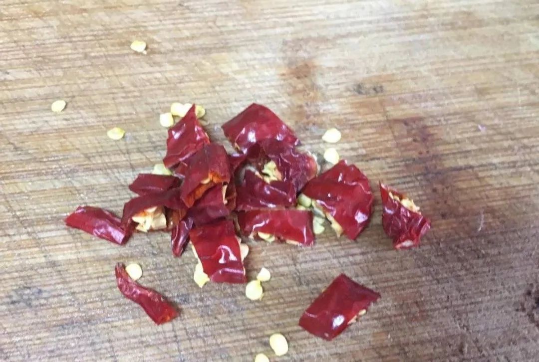 7、干红辣椒也要剁碎。