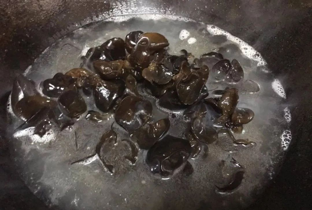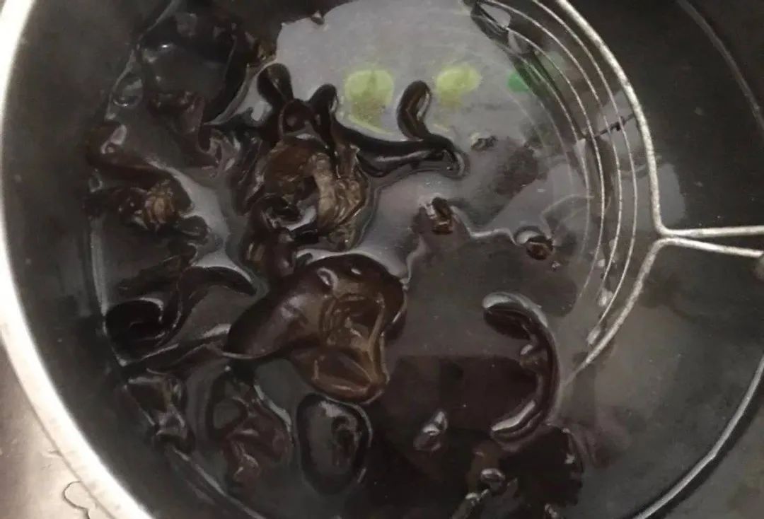 3、开水过一下木耳,水开以后再煮2分钟,就可以出锅了。