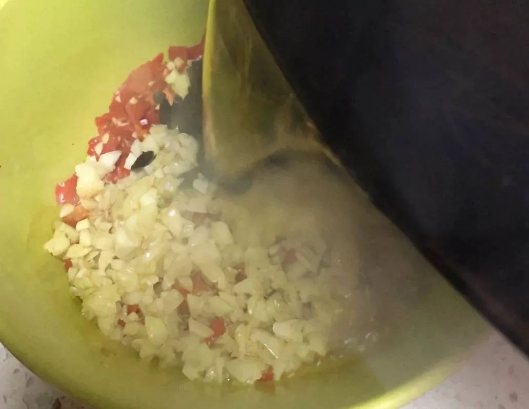 3、一定要热油倒入料汁中,这样料汁才会香。