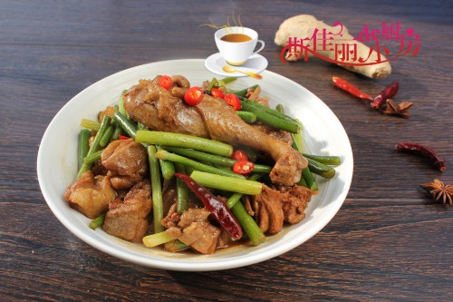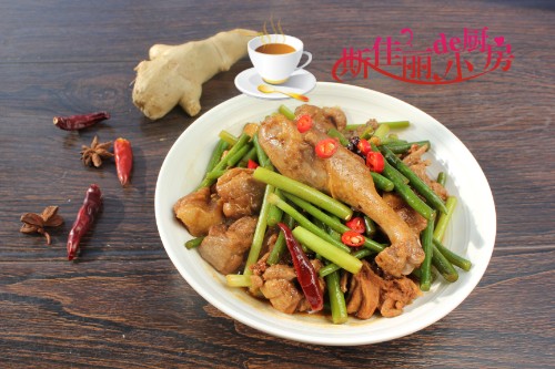 【蒜薹烧鸭腿】