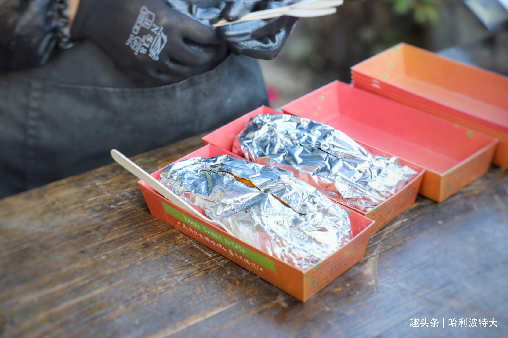 过了潮河川桥,往前行几步就是一个潮河第一营前的日月广场。广场的入口处有个烤红薯的摊位特别有人气——古北红烤红薯(18元/份),而且人家的红薯烤得就是好。甚至可能你连红薯的影子没看到,就能闻到烤红薯的香。走到摊位前,照样需要排队。
