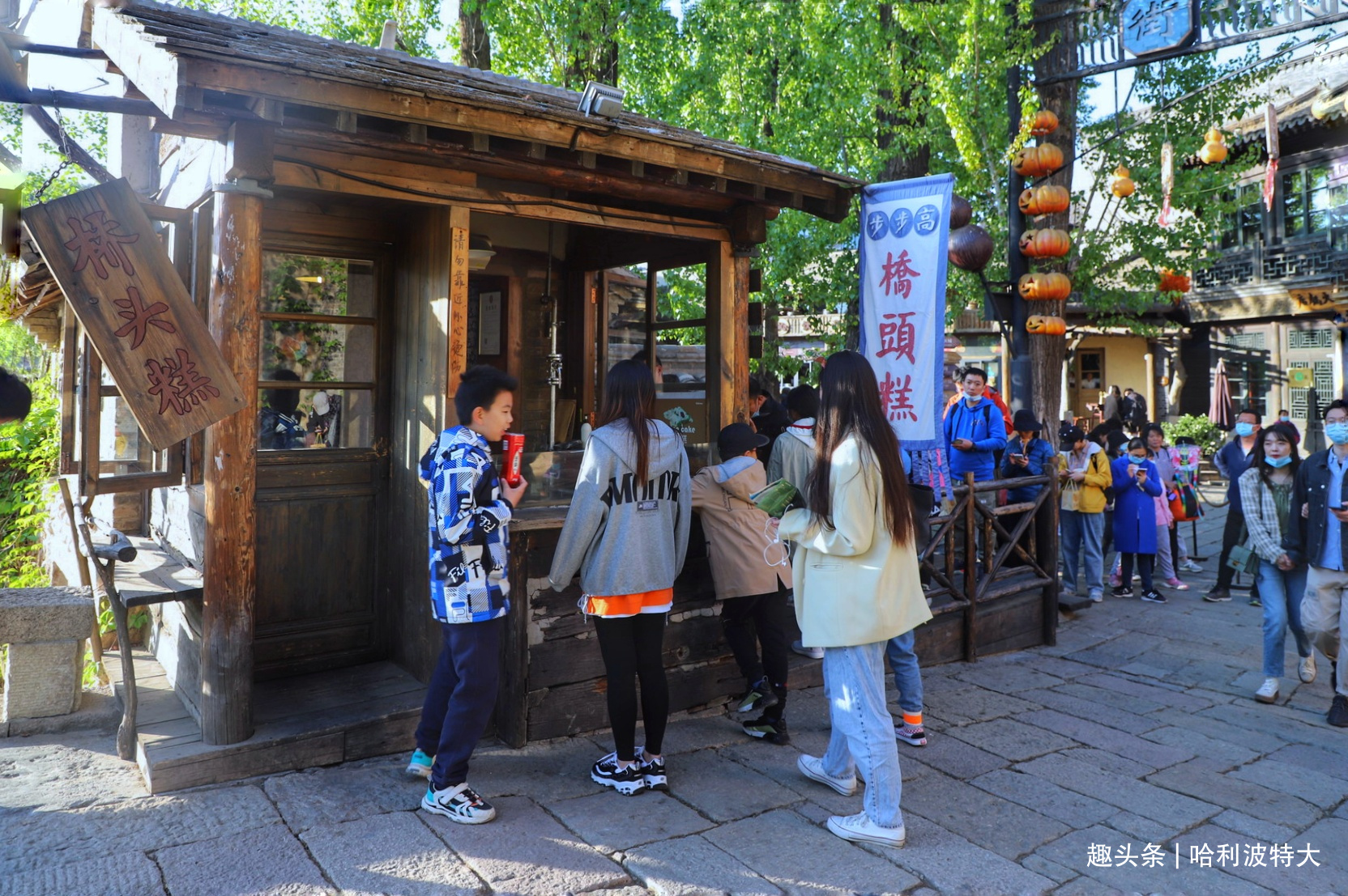 古北水镇的面积不小,景区的官网上说有9平方公里,古镇里面的青石头小巷和水系纵横交错,人多时热闹,人少时有种宁静水乡的美感。在古北水镇的西北部区域有一座石桥,名叫“潮河川桥”,桥本身一般般,但在桥头上有一家生意超级火爆的小吃摊——桥头糕。店面规模非常袖珍,但无论是不是饭点儿,小店的前面总是有游客排队买糕。我发现多数游客路过这里,即使不饿也会主动花钱讨个好彩头——买个桥头糕尝尝,寓意着“步步登高”。