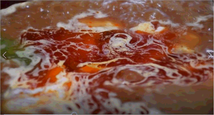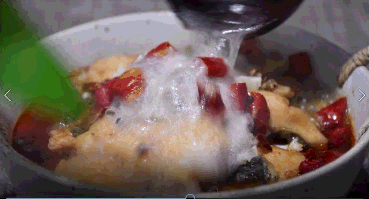 5:另起锅,加入食用油烧热,随后倒入葱姜蒜末,干辣椒炒香,再加入火锅底料炒出香味。随后倒入煮鱼骨的汤汁烧沸,加盐,鸡精调味,紧接着把里面的辣椒以及其它物质捞出。