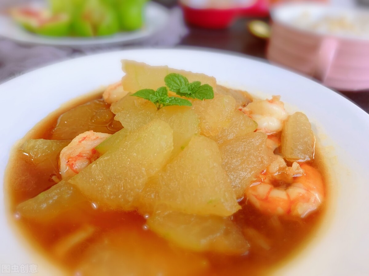 一,冬瓜虾仁汤。一到夏天,冬瓜是非常受欢迎的,它是一道性价比非常高的蔬菜,花一两块钱就能够吃上一顿,非常实惠,冬瓜的主要作用是利尿消肿祛湿气,夏天也是一个多雨的季节,湿气比较重,这时候可以多用冬瓜来熬汤喝,加入虾米会使整道冬瓜汤的味道更加提鲜,喝起来更美味。