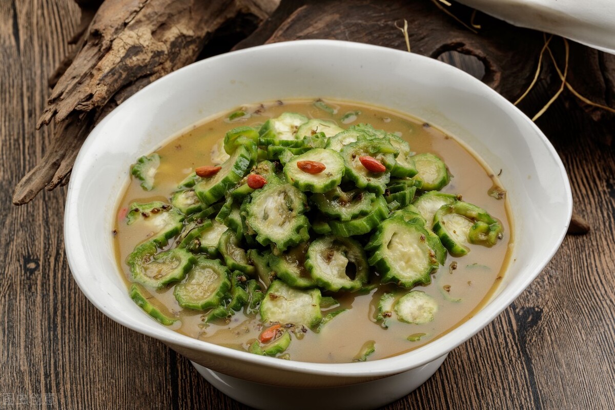 五,苦瓜枸杞粥。夏天的时候,苦瓜时令上市,营养价值很高,但是它是略带苦苦的涩味,所以喝起来口感可能会差一些,但是在烹饪这道粥品的时候,首先在锅内把苦瓜稍微焯水,然后再切成小粒去熬粥,在熬的过程中加入几块冰糖,这样熬出来的,苦瓜粥就没有那么苦涩了,另外,做这道粥的时候可以加入大米和枸杞,让营养价值更高,喝起来更美味。