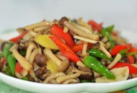 2.锅中烧油,下姜末爆香,倒入香菇和蟹味菇中小火翻炒,炒出菇类的香味;