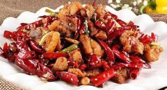 香酥辣子鸡 材料:鸡腿1个,脆辣椒150克,葱1段,姜1小块,花椒50克,干辣椒50克,盐1茶匙(5克),糖1茶匙(5克),料酒1汤匙(15ml) 做法: 1、把鸡腿洗净后,剔去骨头,把鸡腿肉