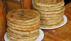 用料 油酥饼的做法 面粉倒进盆里,放进五克左右精盐搅拌开。中间划一条线。三分之一,三分之二分开。三分之二用开水和面。三分之一用冷水和面。和好面絮以后一起揉成面团,抹