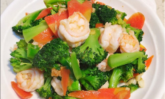 西蓝花炒虾仁 材料:虾仁、西蓝花、大蒜、淀粉、生抽、蚝油、油、盐。 做法: 1、西蓝花切成小朵,放入盐水中浸泡15分钟,然后冲洗干净,沥干水分备用。 2、虾仁处理干净备用,