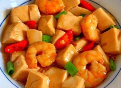 虾仁烧豆腐 食材:豆腐,虾仁,豆瓣酱 1、虾仁去虾线放入碗中,加入少许食盐、白胡椒粉、料酒抓匀 2、抓匀后加入1/2茶匙淀粉继续抓匀,腌渍几分钟后将虾仁滑炒至变色捞出备用