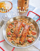 无论窗外几度,都愿室内有你的温度。 寒冷天气做一道经典的意式炖菜太合适不过了! 【需要食材】 带皮三文鱼肉两块、菠菜叶一把、罗勒叶、奶油适量、黄油一块、洋葱1/3个、大蒜