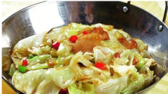 干锅手撕包菜 材料:卷心菜300g,五花肉100g,干辣椒5个,酱油2勺,料酒1小勺,醋半勺,鸡粉半勺,蒜适量,盐适量,食用油适量 做法: 1、包菜撕成小块,然后用盐水浸泡洗净;五花