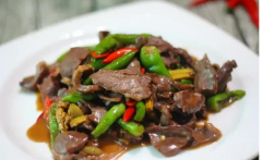 爆炒猪心 材料: 猪心、葱姜蒜; 做法:1.将猪心用清水洗净,切成薄片,放在水里,加料酒浸泡半小时去腥;腌:用盐,胡椒粉,老抽,生粉,花生油,香油,味精腌制3~5分钟(以便