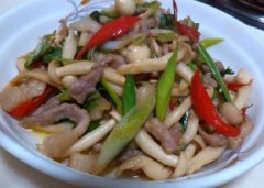 炒鲜菇 食材:鲜菇200克,青尖椒一个,洋葱适量,蒜两瓣,生抽一匙。 做法: 1、鲜菇用水冲洗干净,沥尽水。 2、尖椒、洋葱分别切片,蒜切片。 3、炒锅注油,烧至四成热, 倒入鲜