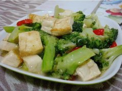 西兰花烧豆腐 食材:西兰花、豆腐(用盐水豆腐 不用嫩豆腐) 做法: 1、西兰花洗净切成小朵;豆腐切块;红椒切段。 2、起锅热油 豆腐用小火煎略黄 盛出备用;西兰花用滚水焯片刻 捞出