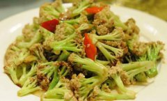 清炒菜花 食材:菜花2个、蒜2瓣、蒸鱼豉油、1汤匙、红辣椒1个、花生油1汤匙、苏打粉1茶匙、水适量。 做法: 1. 菜花用清水加小苏打浸泡10分钟以去除农药,然后冲洗,沥干,从菜花的根