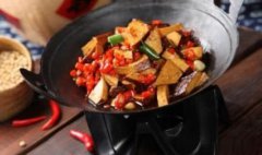 干锅豆干 材料:豆腐干、盐2克、味精1克、黄豆酱油2克、豆瓣酱5克、姜末、蒜蓉、青蒜段、鲜红辣椒段、干辣椒、油、高汤 做法: 1.豆腐干切成薄片,腊肉洗净,切薄片。 2.锅内放油,