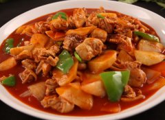 大盘鸡 食材:鸡肉、青辣椒、土豆、红辣椒、油、白糖、老抽、酱油、料酒、花椒、姜片、葱段、大蒜、干辣椒、郫县豆瓣 做法 1、土豆去皮洗净切成块,青红辣椒洗净切滚刀块,鸡肉