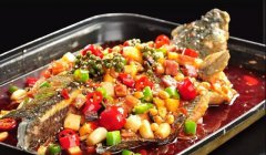 特色炝锅鱼 食材:草鱼、盐、料酒、姜片、葱节、姜片、蒜片、豆瓣酱、糍粑辣椒、鲜汤、盐、白糖、酱油、陈醋、料酒、鸡精 做法: 1.把草鱼宰杀治净后,剪去鱼鳍并沿鱼背骨划刀